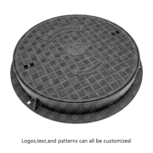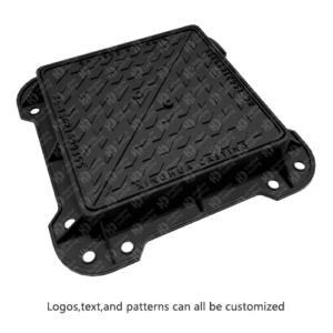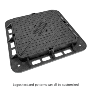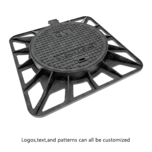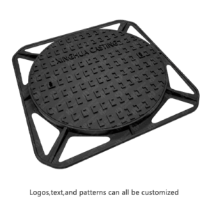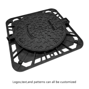 Tampon de regard à cadre carré avec couvercle rond et charnière antivol